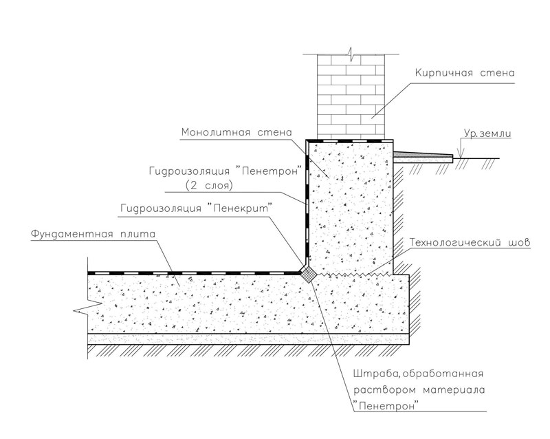 Второй вариант гидроизоляции фундамента с применением материалов «Пенетрон» и «Пенекрит».