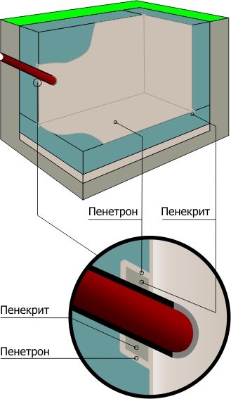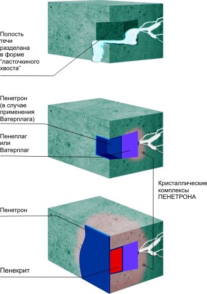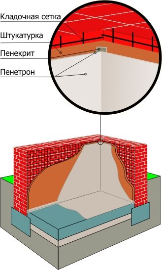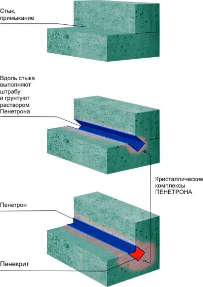Отсечение капиллярного подсоса между бетонным фундаментом и стеной, выполненной из пористого материала.
