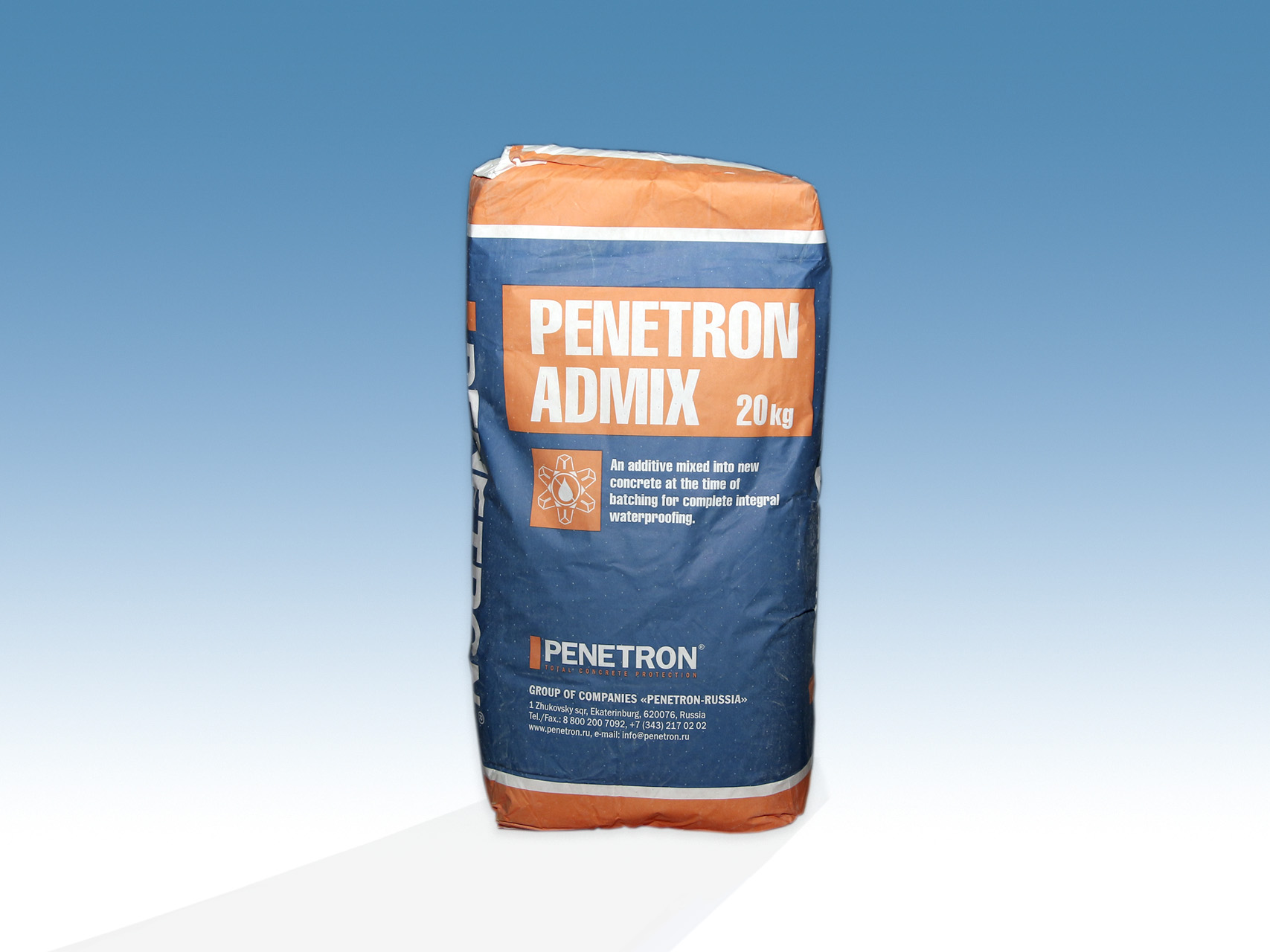 Гидроизоляционная добавка в бетон — сухая строительная смесь «Пенетрон Адмикс», относящаяся к системе материалов проникающей гидроизоляции «Пенетрон», предназначена для обеспечения водонепроницаемости монолитных бетонных и железобетонных конструкций на стадии бетонирования, для обеспечения водонепроницаемости бетонных и железобетонных изделий на стадии производства.
