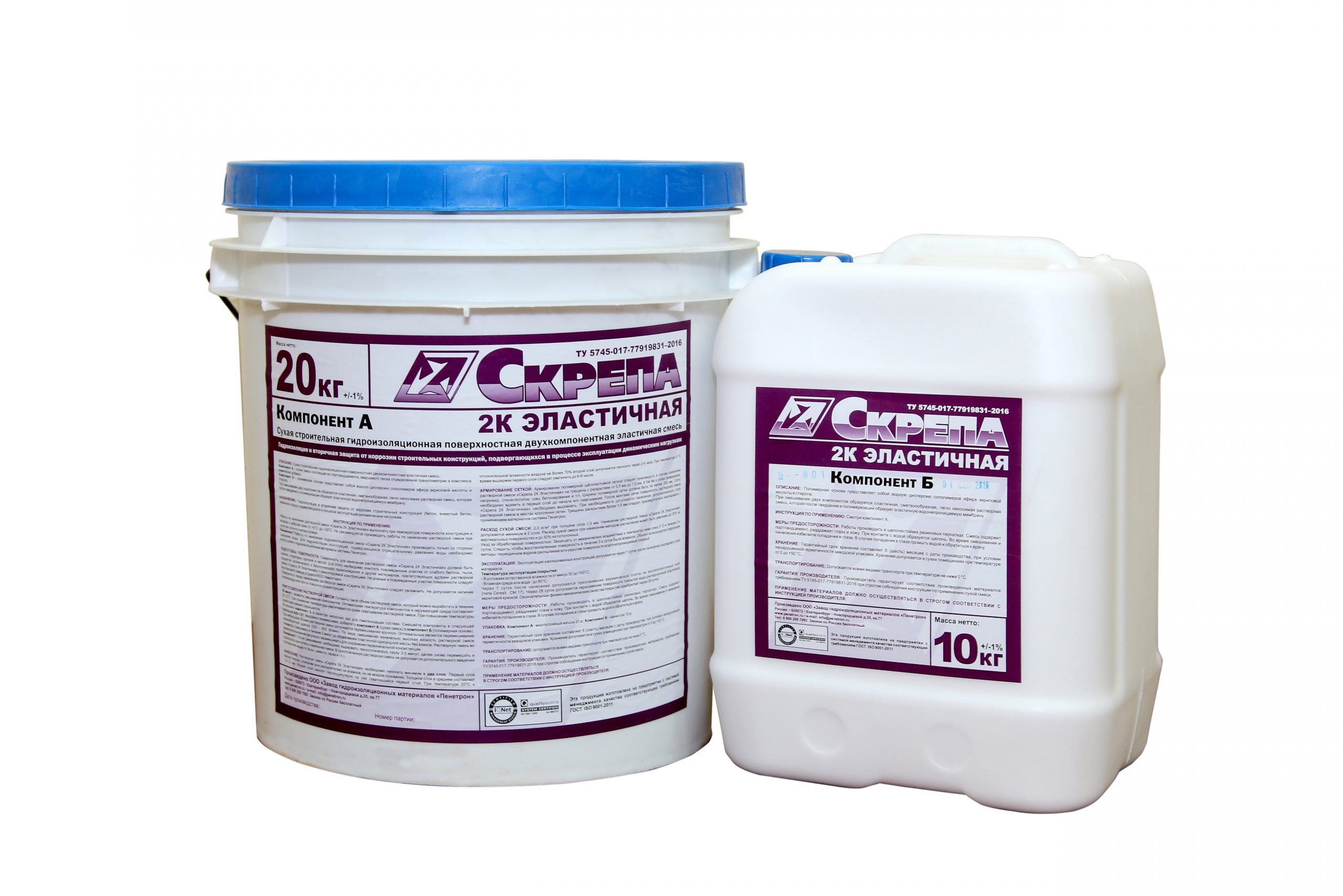 Смесь строительная гидроизоляционная двухкомпонентная эластичная используется для гидроизоляции (со стороны давления воды) и вторичной защиты от коррозии строительных конструкций (бетон, ячеистый бетон, каменная кладка и т.д.), в том числе подвергающихся в процессе эксплуатации динамическим нагрузкам.